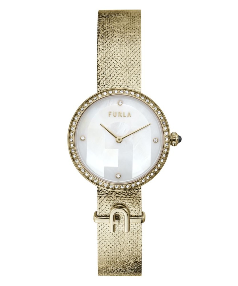 Ceasul de mana Furla pentru femei are mecanism quartz si este potrivit stilului casual. Carcasa este din inox si are diametrul de 32 mm iar cureaua este confectionata din inox. Cadranul are display analog si geamul foarte rezistent realizat din cristal mineral cu etanseitate (rezistenta la apa) de 5 atm.