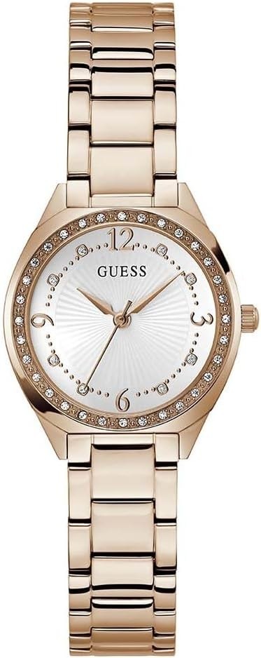 Ceasul de mana Guess pentru femei are mecanism quartz si este potrivit stilului casual. Carcasa este din inox si are diametrul de 30 mm iar cureaua este confectionata din inox. Cadranul are display analog si geamul foarte rezistent realizat din cristal mineral cu etanseitate (rezistenta la apa) de 9 atm.