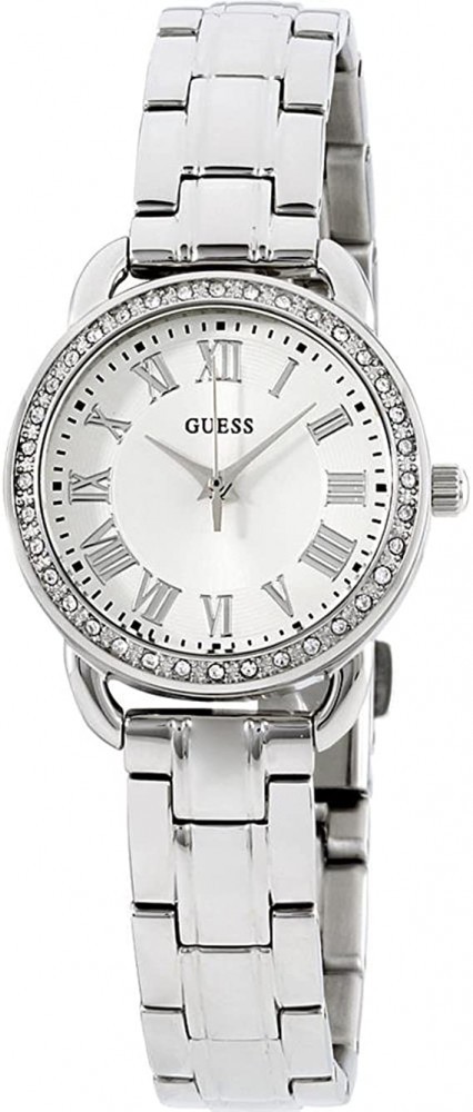 Ceasul de mana Guess pentru femei are mecanism quartz si este potrivit stilului elegant. Carcasa este din inox si are diametrul de 27 mm iar cureaua este confectionata din inox. Cadranul are display analog si geamul foarte rezistent realizat din cristal mineral cu etanseitate (rezistenta la apa) de 3 atm.