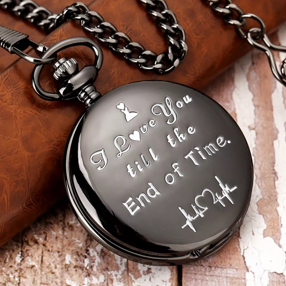 Ceas de buzunar vintage, JustZEN™, Love - cadou sot sau prieten, cu lant , negru Quartz