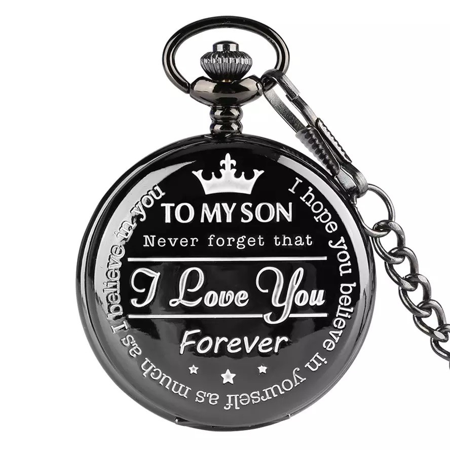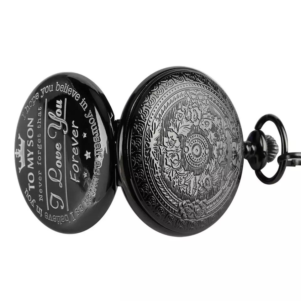 Ceas de buzunar vintage, JustZEN™, Son, cu lant , negru Quartz