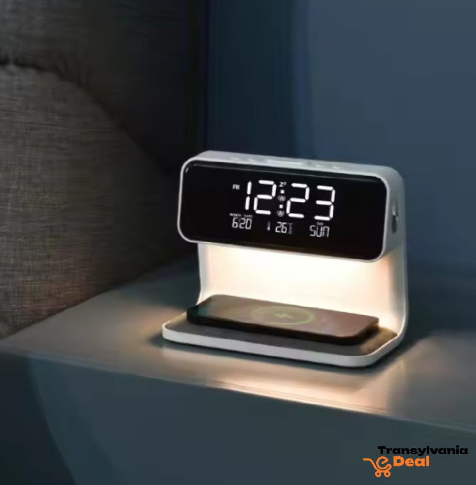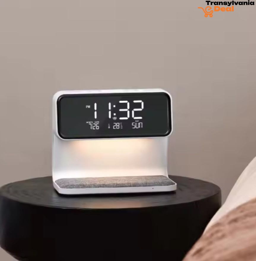 Ceas Digital cu Incarcare Wireless, Afisaj LED si Lumina Ambientala