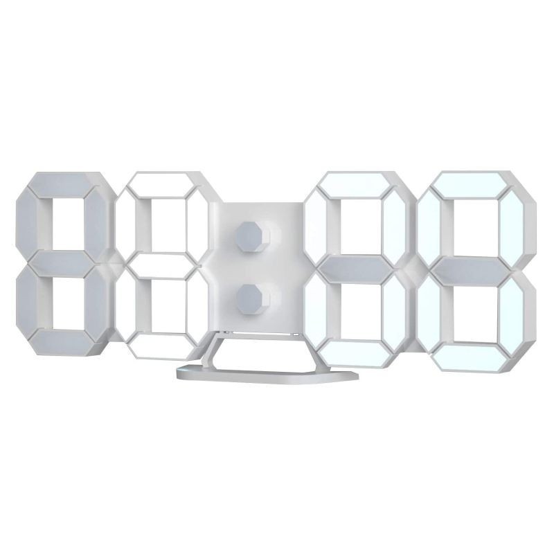 Ceasul digital cu termomentru si afisaj mare cu lumina LED alb rece este un accesoriu potrivit atat pentru birou cat si pentru casa. Este prevazut cu suport pentru a putea fi pus pe birou sau orice suprafata plana, precum si cu orificiu dispus in spatele ceasului pentru a putea fi agatat pe perete.