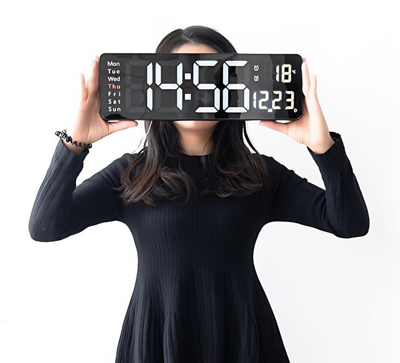 Ceas mare digital de perete, 39 cm, alarma, termometru, telecomanda
