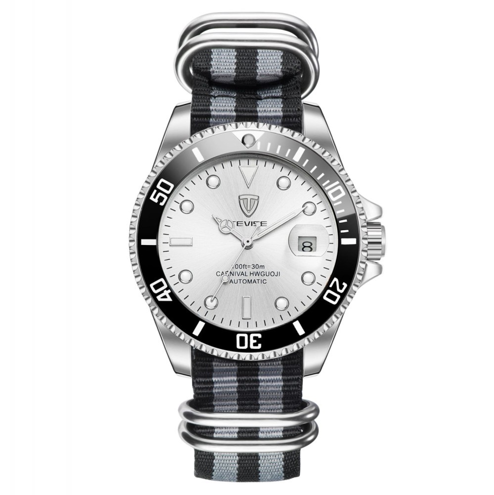 Ceas mecanic automatic Tevise Curea Nylon Analog Argintiu