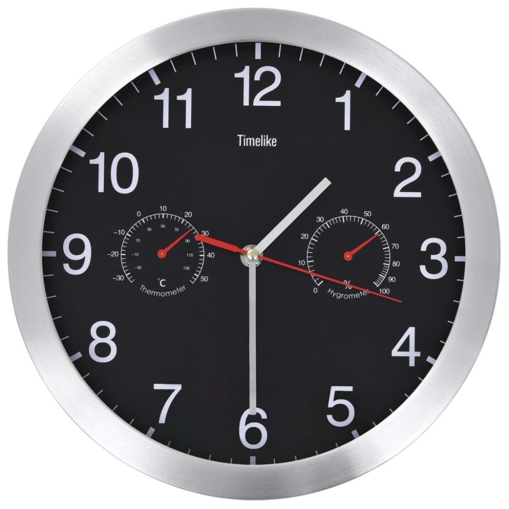 Ceas perete mecanism cuart, higrometru/termometru, negru, 30 cm