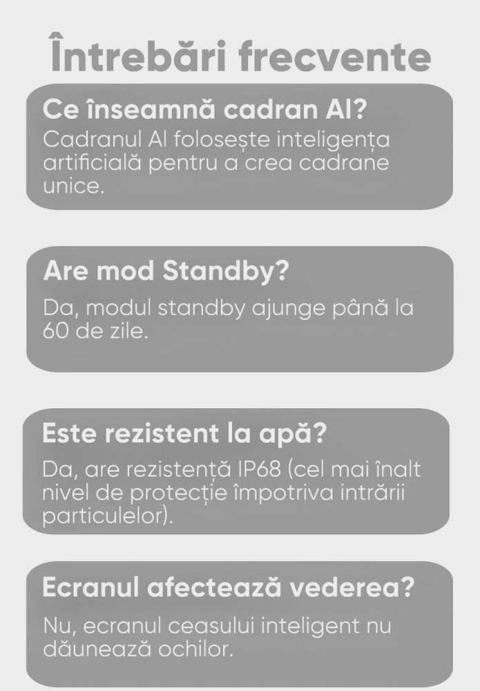 Compact si clar, acest SmartWatch ofera o experienta vizuala impresionanta in orice context, de la continut multimedia la informatii esentiale.