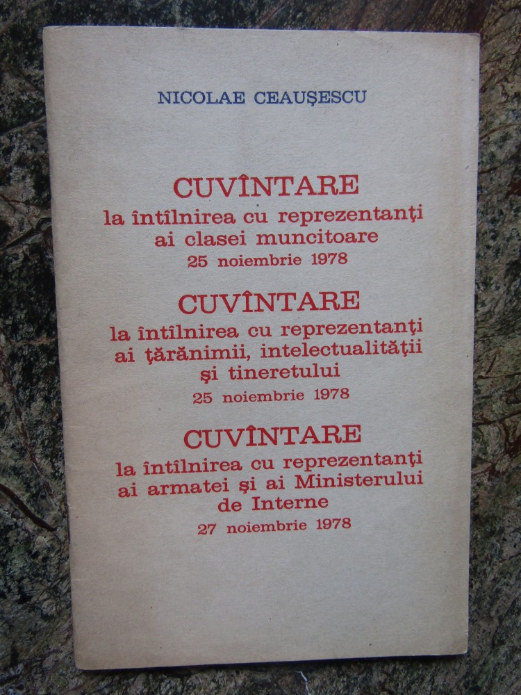 CEAUSESCU CUVANTARE LA INTALNIRERA CU REPREZENTANTI... 27 NOIEMBRIE 1978