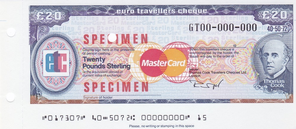 Cec de calatorie Thomas Cook - MasterCard 20 Lire sterline SPECIMEN