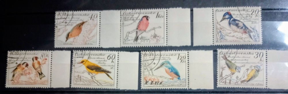 Cehoslovacia 1959 păsări ciocănitoare pițigoi pescăruș albastru serie 7v stampilata