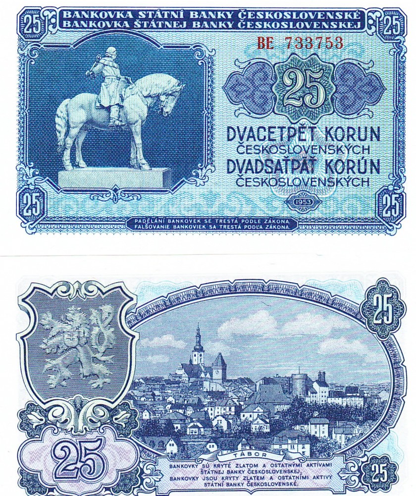 -Cehoslovacia 25 Korun 1953 P-84a UNC