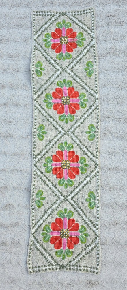 CENTRU DE MASA VINTAGE CU MODEL CUSUT MANUAL IN CRUCIULIȚE PE ETAMINA