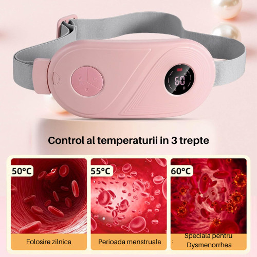 Centura abdominala pentru incalzire si masaj SpectrumPoint®, anti dureri menstruale si lombare, ciclu, 3 trepte de incalzire si 3 programe cu vibromas