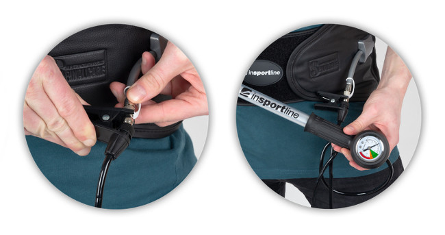 Cureaua se umfla cu o pompa manuala depinde in intregime de dumneavoastra ce presiune de umflare folositi. In timpul umflarii, centura se extinde de jos in sus, eliberand presiunea din coloana vertebrala si din discuri. Datorita manometrului incorporat, puteti nota presiunea de umflare si o puteti folosi pentru referinte viitoare. Deoarece centura este ingusta in partea din fata, nu va impiedica in niciun fel miscarea, ceea ce o face potrivita pentru toate tipurile de activitati, inclusiv pentru sport.