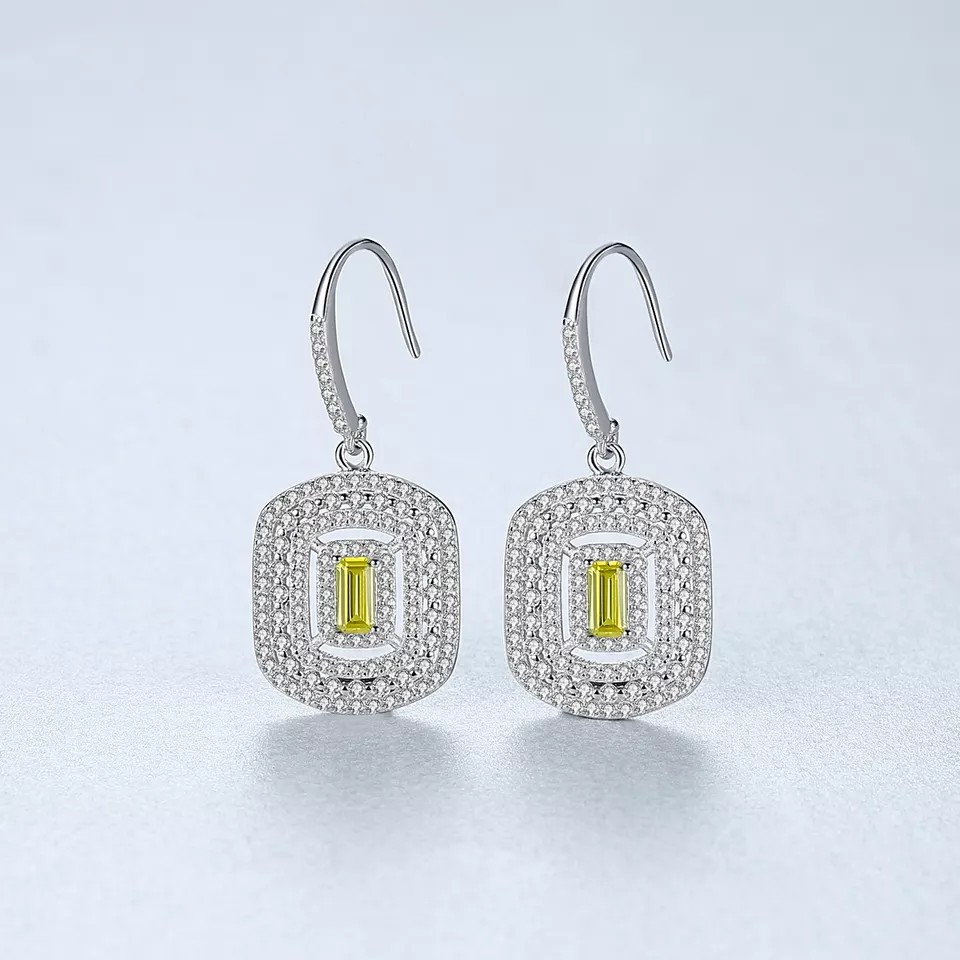 Cercei ARGINT Yellow Crystal Patrat Arg398A