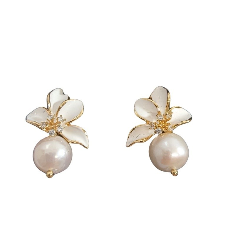Cercei cu perle floare emailata