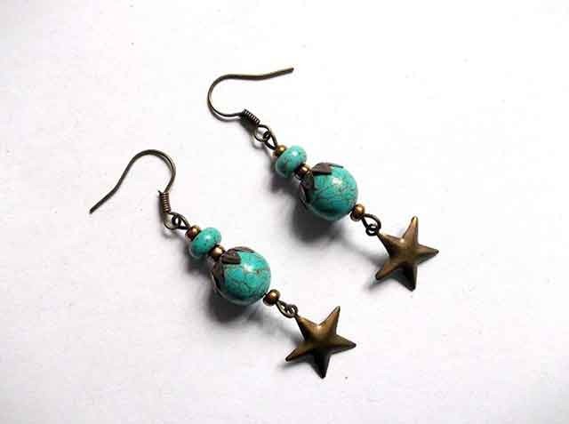 Cercei cu stea din bronz si turcoaz, cercei pietre semipretioase 34631