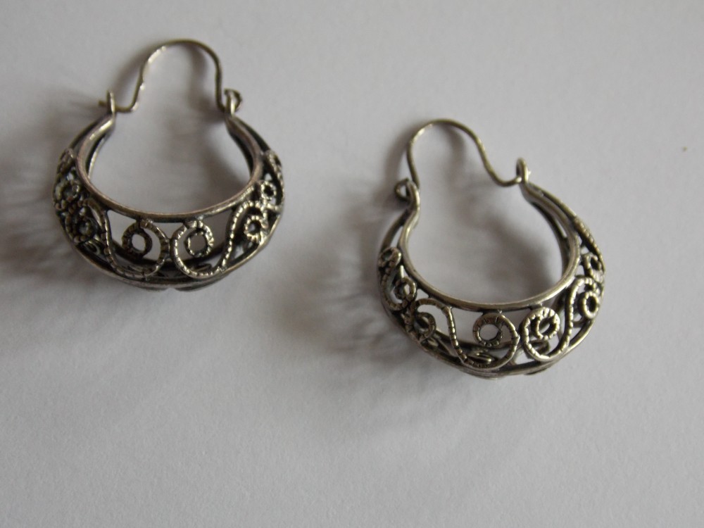 Cercei de argint ,greutate 7,2 gr ,latime 2,5 cm si inaltime 3,5 cm ,in stare foarte buna .