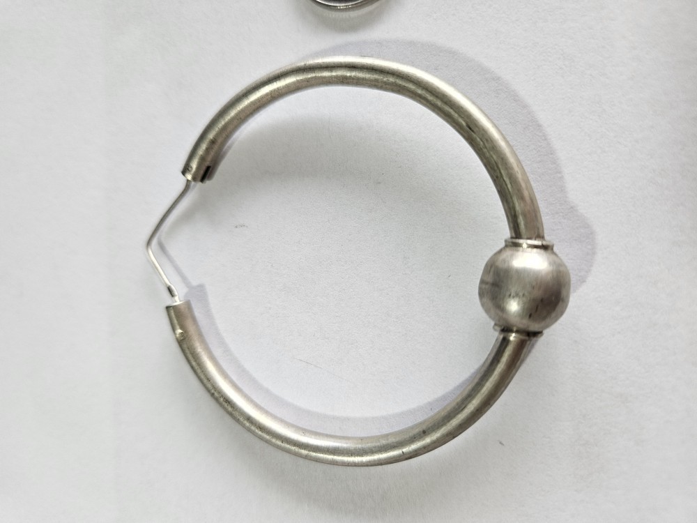 Cercei din argint, marcaj in limba araba, greutate 27 gr, diametru 6.3 cm, in stare buna, cumparati cu incredere, orice produs se poate returna! Transport doar prin Posta Romana!