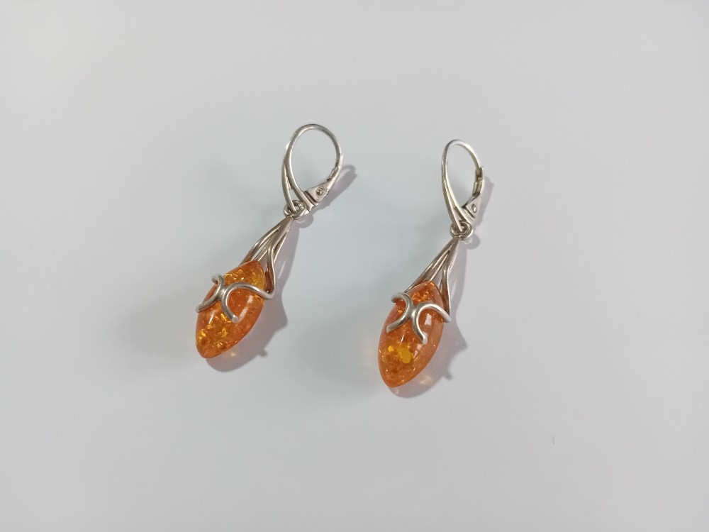 Cercei din argint cu chihlimbar, marcaj 925, greutate 4.7 gr, lungime 4,5 cm, in stare buna, cumparati cu incredere, orice produs se poate returna, transport doar prin posta.
