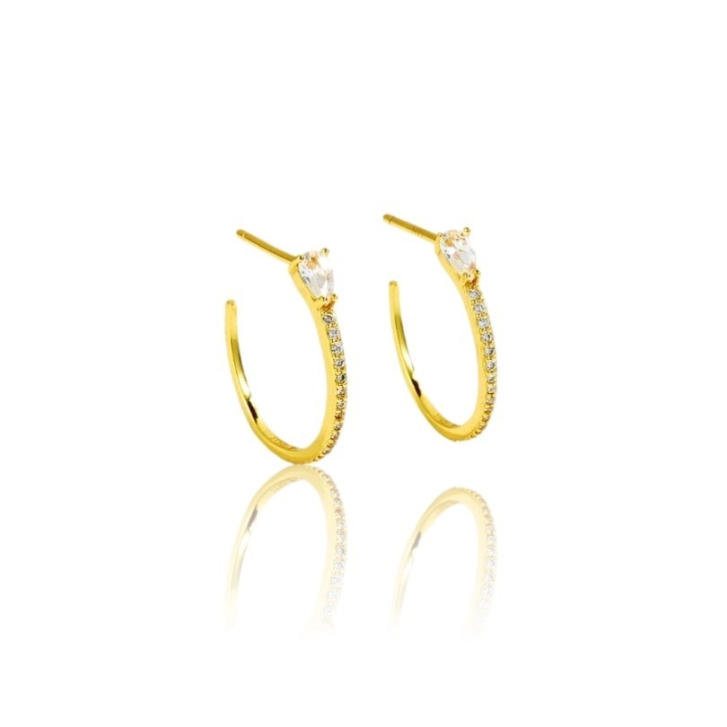 Acești cercei delicati din argint 925 placat cu aur sunt ideali pentru a adăuga un strop de rafinament stilului tău. Cu zirconii strălucitoare, cerceii aduc un plus de eleganță și feminitate, fiind potriviți pentru orice ocazie.