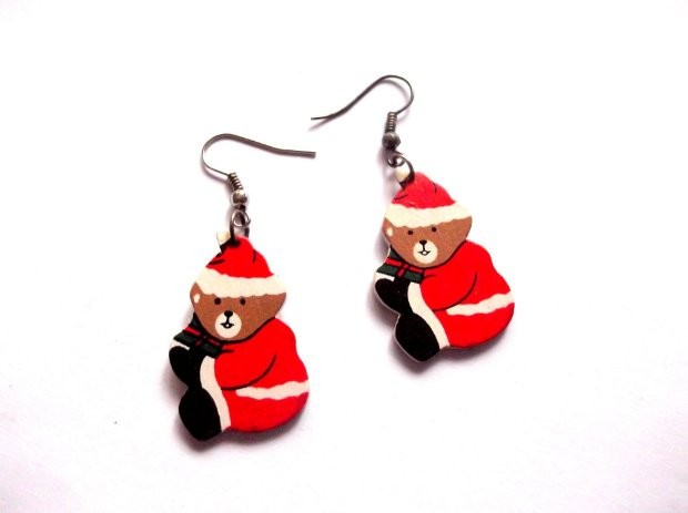 Ursuleti cu cadouri de Craciun, cercei lemn Craciun 40095. Cercei cu ocazia sarbatorilor de iarna.