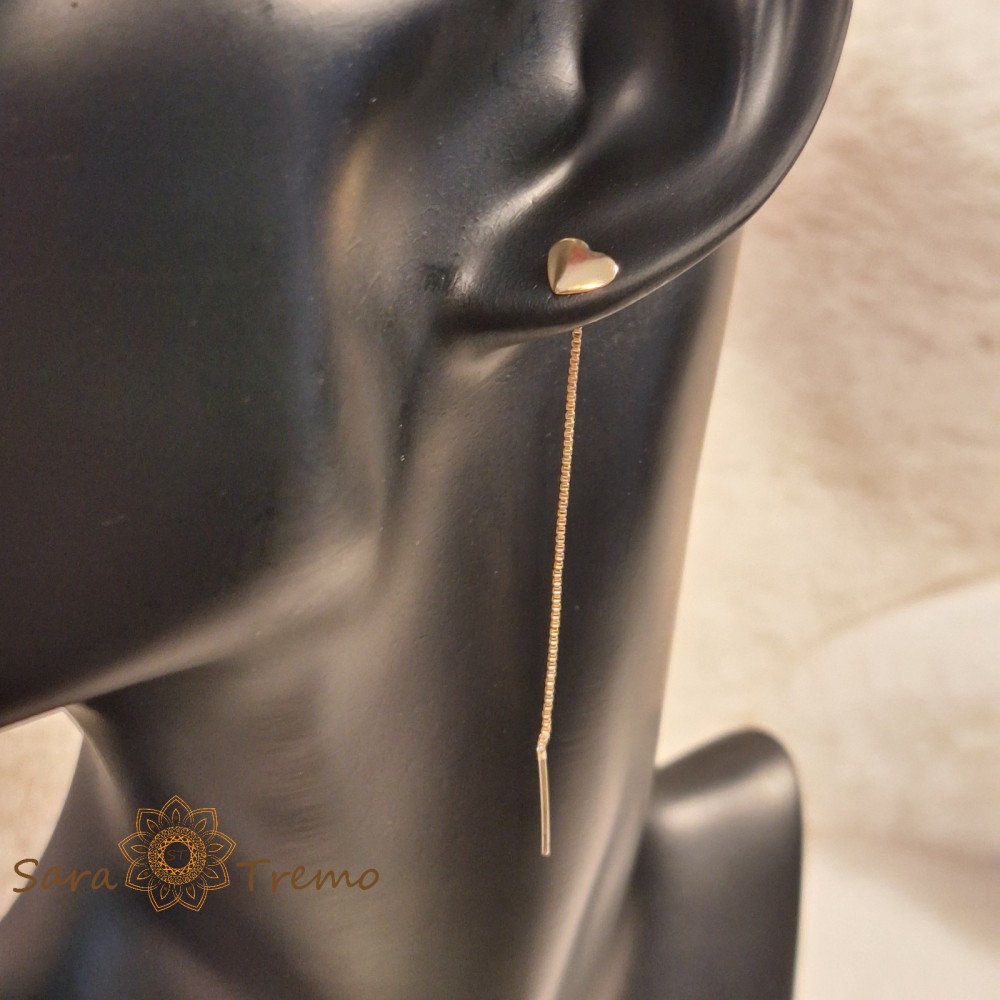 Romantici, delicați și cu un design subtil, acești cercei cu fir prin ureche, placati cu aur, sunt decorați cu o inimioară fină poziționată pe lobul urechii. Lanțul lung de 7 cm adaugă o notă elegantă și fluidă, creând un efect vizual rafinat și feminin.