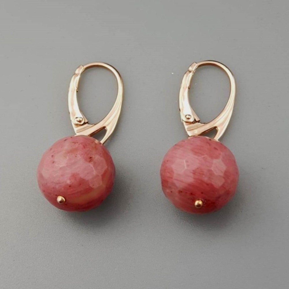 Cercei Vision din rodonit. Cercei din rodonit cu sfere de 14 mm. Lungime: aproximativ 3 cm. Se poate compune set cu: colier Vision. Detalii produs: Argint 925/°°° placat cu aur roz, cu tratament antioxidant unic. Certificat de garanție a materialului. Cutie și pungă cadou incluse. Fiecare bijuterie este realizată manual, cu precizia inconfundabilă Made in Italy. Notă: Culorile pietrelor semiprețioase pot diferi în funcție de reflexia luminii.