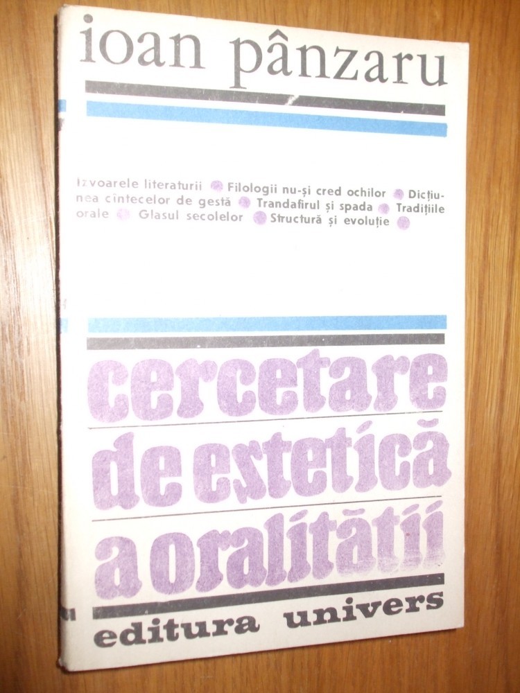 CERCETARE DE ESTETICA A ORALITATII - Ioan Panzaru - 1989, 418p.