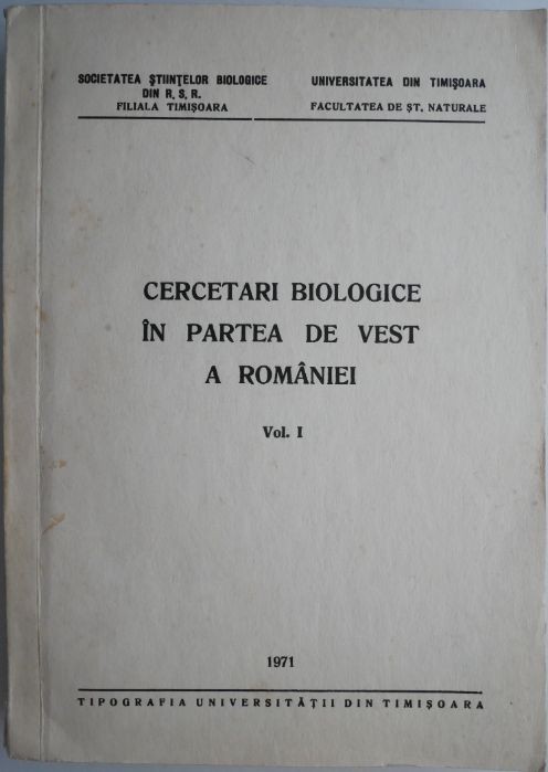 Cercetari biologice in partea de vest a Romaniei, vol. I