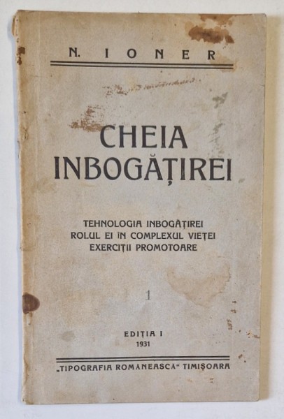 CHEIA INBOGATIREI , TEHNOLOGIA INBOGATIREI , ROLUL EI IN COMPLEXUL VIETEI , EXERCITII PROMOTOARE de N. IONER 1931