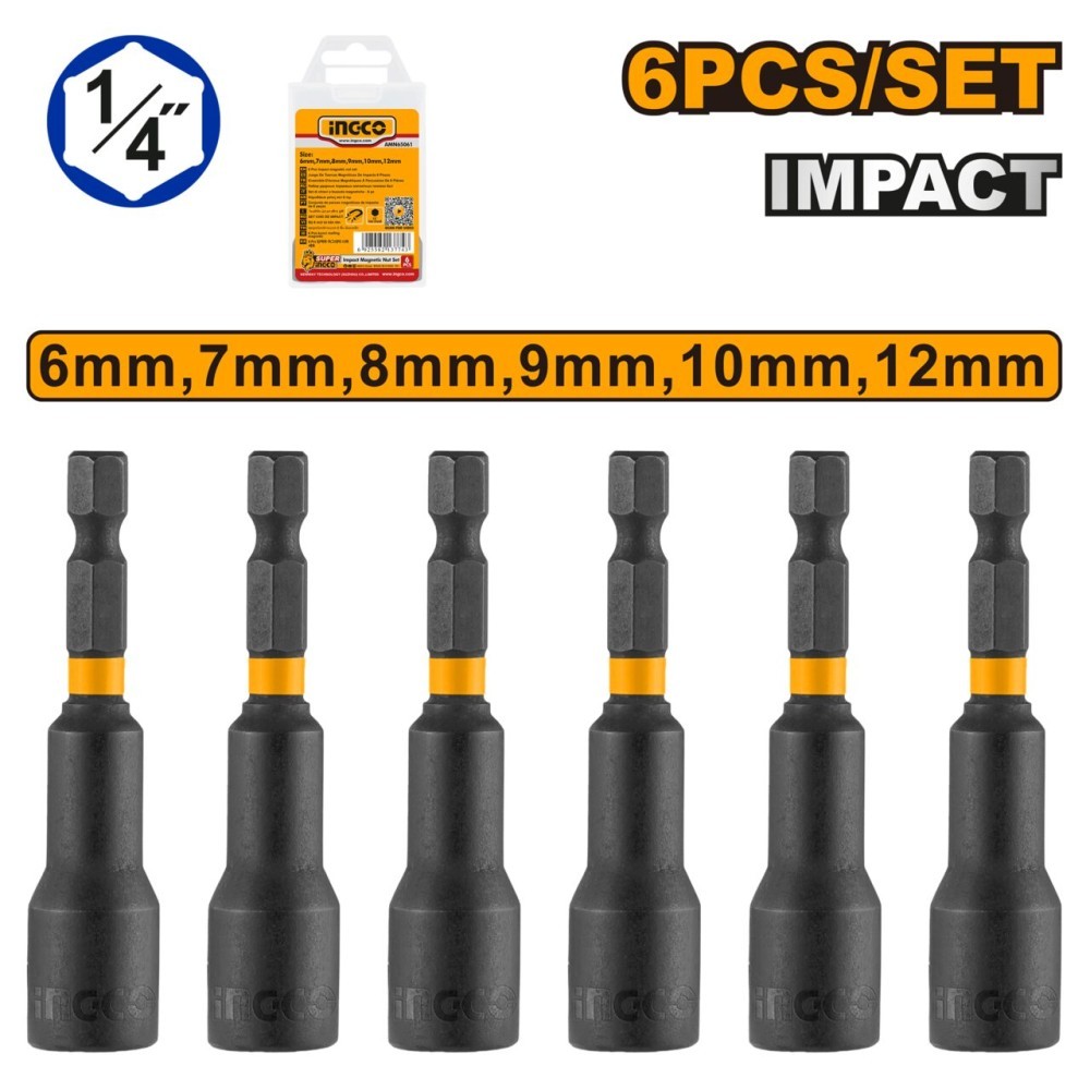 Cheie bit magnetica 6-12 mm, tubulara hex 1/4 set de 6 bucati - Ingco AMN65061