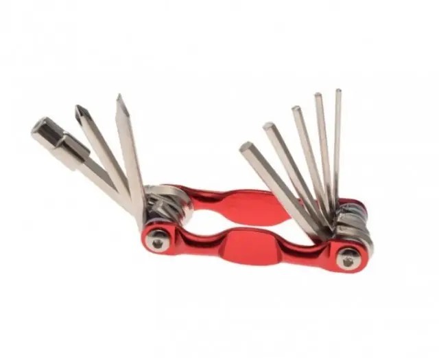 Descriere Instrument multifuncțional: - cheie hexagonala 2 / 2,5 / 3 / 4 / 5 / 6 / 8 mm - șurubelniță +/- - material otel Cr-V