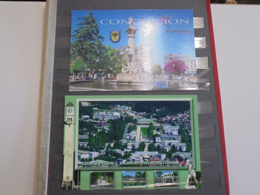 CHILE - 2 VDERI DIN ORASUL CONCEPTION - CENTRUL CIVIC SI PE VERSO VEDERE PANORAMICA NOAPTEA , VEDERE AERIANA A CENTRULUI UNIVERSITAR SI PE VERSO HARTA TARII - NECIRCULATE.