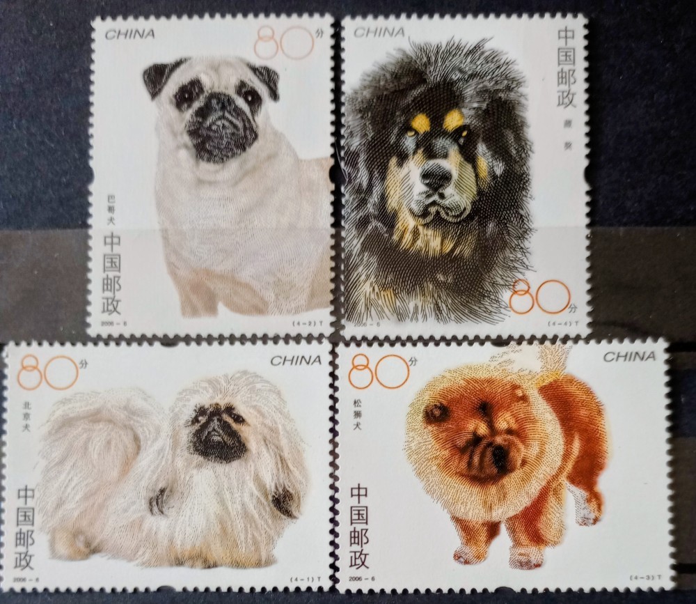 China 2006 câini de rasă chow chow,mops,pechinez,mastif tibetan fauna animale de companie China serie 4v neștampilată