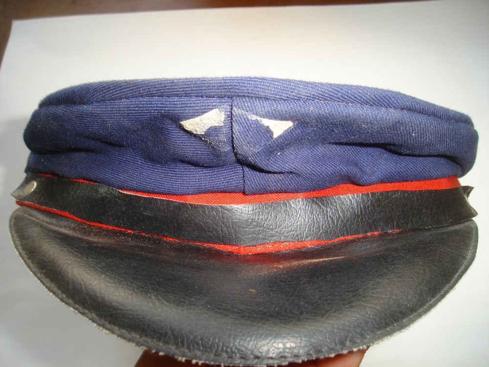 Chipiu de elev, stare buna. Din pacate insemnul de scoala lipseste, a fost dezlipit, nu are niciun marcaj. Pare un chipiu facut intr-un atelier de croitorie local, nu pot sa imi dau seama din ce perioada este. Cozorocul este din musama. S-ar putea sa fie un chipiu de elev CFR.