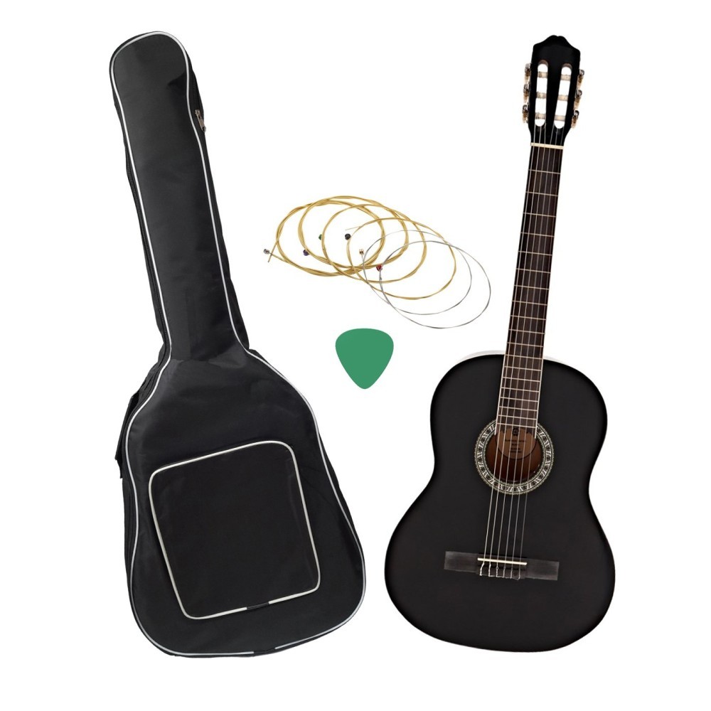 Chitara clasica 104 cm, Black Raven, lemn, model clasic, negru, husa, corzi si pana incluse