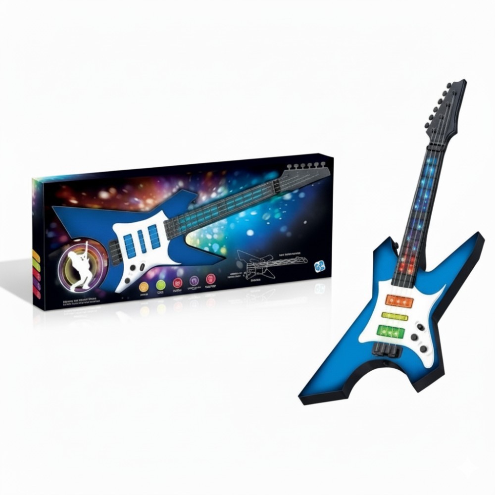 Descoperiti placerea jocului cu chitara cu lumini pentru copii, o jucarie electrica captivanta care va stimula creativitatea si simtul ritmului copiilor.