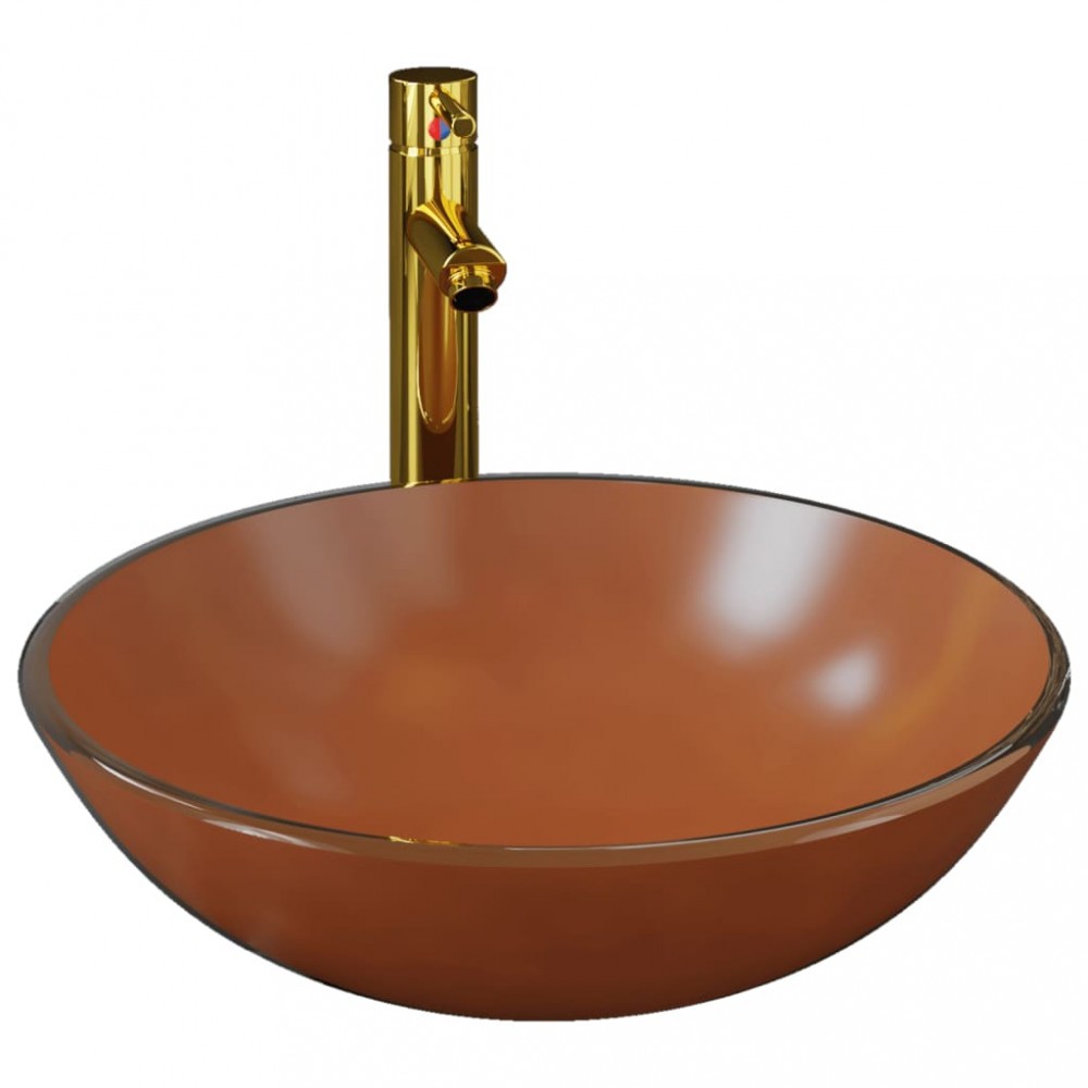 Chiuveta baie, robinet si scurgere tip push, maro sticla calita