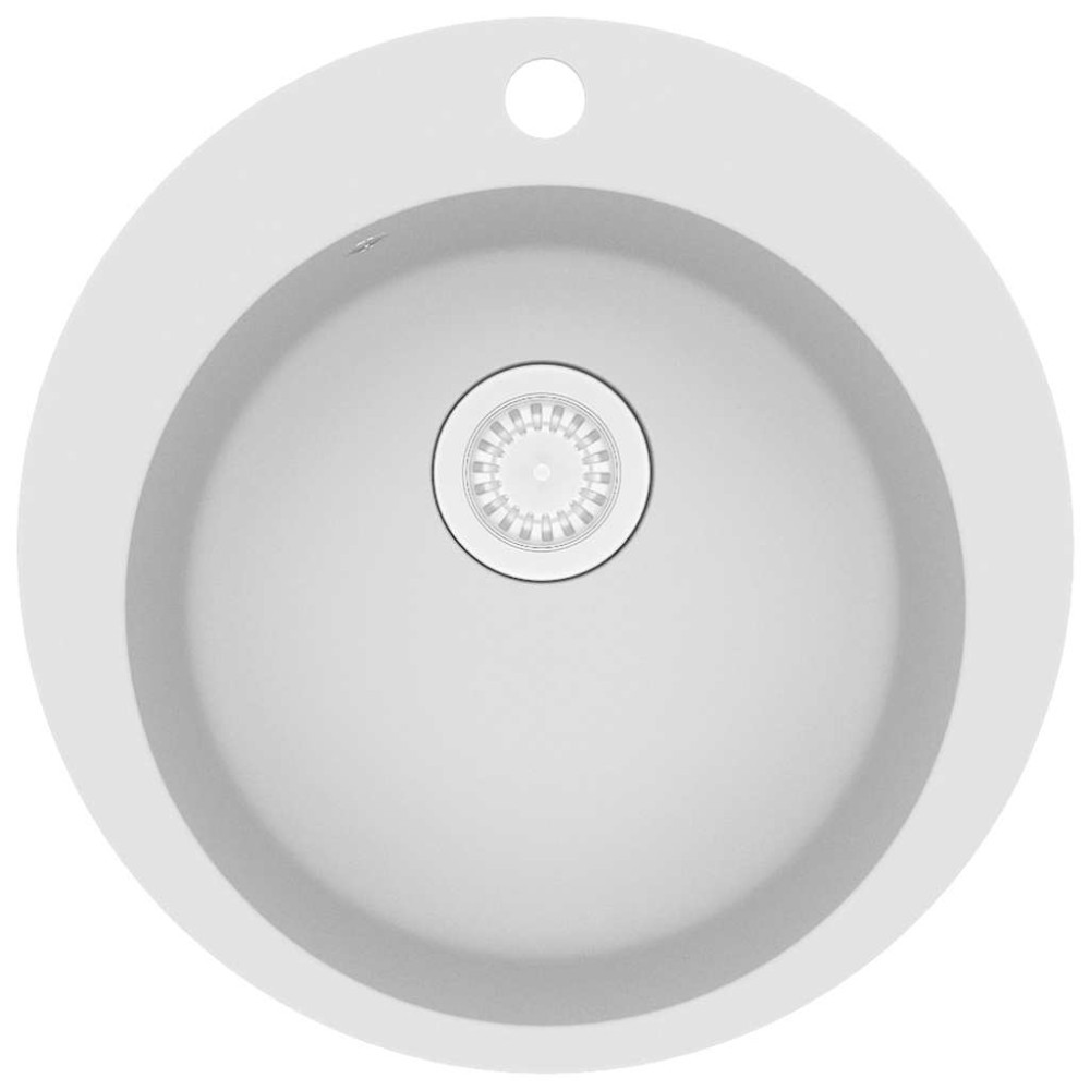 Chiuveta de bucatarie din granit, alb, un bazin, rotund