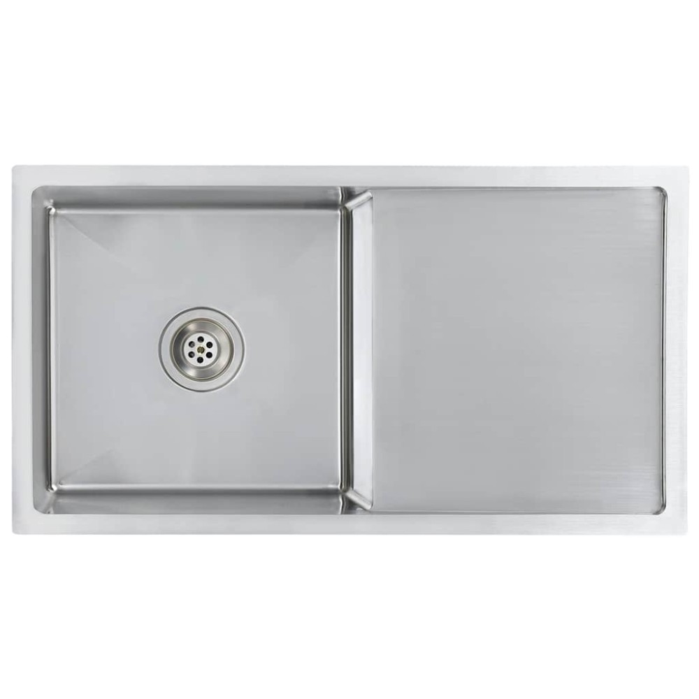 Combinand foarte bine functionalitatea si designul, aceasta chiuveta cu o singura cuva este realizata manual din otel inoxidabil de inalta calitate, cu vopsea anticondens, rezistenta la mucegai, fara plumb si rezistenta la coroziune. Este izolata fonic cu suporturile de reducere a sunetului. Suportul de scurgere va fi foarte util nu numai atunci cand spalati vasele manual, ci si ca loc suplimentar pentru taierea legumelor. In plus, vasul cu un design unic, cu un canal de scurgere in X, faciliteaza scurgerea rapida, prevenind stagnarea apei pe fundul bazinului.