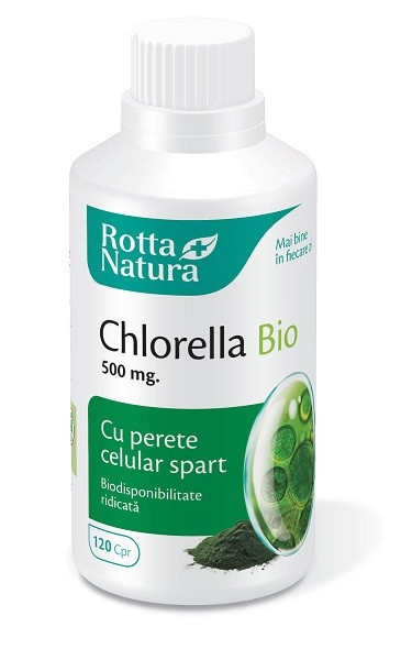 Chlorella BIO 500 mg per comprimat este un supliment alimentar 100% pur, vegetal, certificat ecologic, cu perete celular spart pentru eficiență maximă și biodisponibilitate ridicată. Este o sursă naturală de nutrienți esențiali, vitamine și minerale care susțin sănătatea, integritatea celulară și procesul normal de detoxifiere. Chlorella (Chlorella vulgaris) este o algă microeucariotă verde ce asigură un aport important de proteine de înaltă calitate, care cuprinde toți aminoacizii esențiali. În plus, conține cantități importante din alți macro și micronutrienți, cum ar fi: acizi grași, minerale, clorofilă, xantine și licopen.