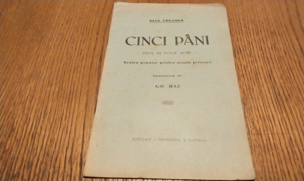 CINCI PANI - Piesa in Doua Acte - Ioan Creanga - GR. BAZ (inscenare) - Tipografia B. Saidman, F.An, 16 p.; coperta originala