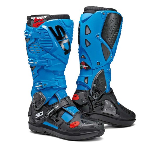 Crossfire 3 este o cizma de motocross cu talpa patentata de SIDI. Crossfire 3 SRS are un sistem de inchidere cu velcro si catarama. Inchiderea cu catarama poate fi actionata independent. Fiecare inchidere consta dintr-o curea dintata si un carlig cu reglaj micrometric. Cataramele, curelele si carligele pot fi schimbate. Padul pentru gambe interschimbabil este format din PU si o insertie de cauciuc imprimata, care protejeaza piciorul de caldura evacuata. Placa de vitel are si o dubla reglare interioara, care permite reglarea latimii. Pentru a va asigura ca glezna nu este supraintinsa, la nivelul gleznei este instalata o articulatie, Hyper Extension Block. Punctul de pivotare superior de pe arbore imbunatateste flexibilitatea spatelui. Acest lucru permite riderului sa personalizeze gambele ghetei pentru a se potrivi perfect pe piciorul sau. Talpa este complet cusuta si nu poate fi inlocuita. Placa pentru tibie este o placa din PU cu forma anatomica care ofera protectie completa.