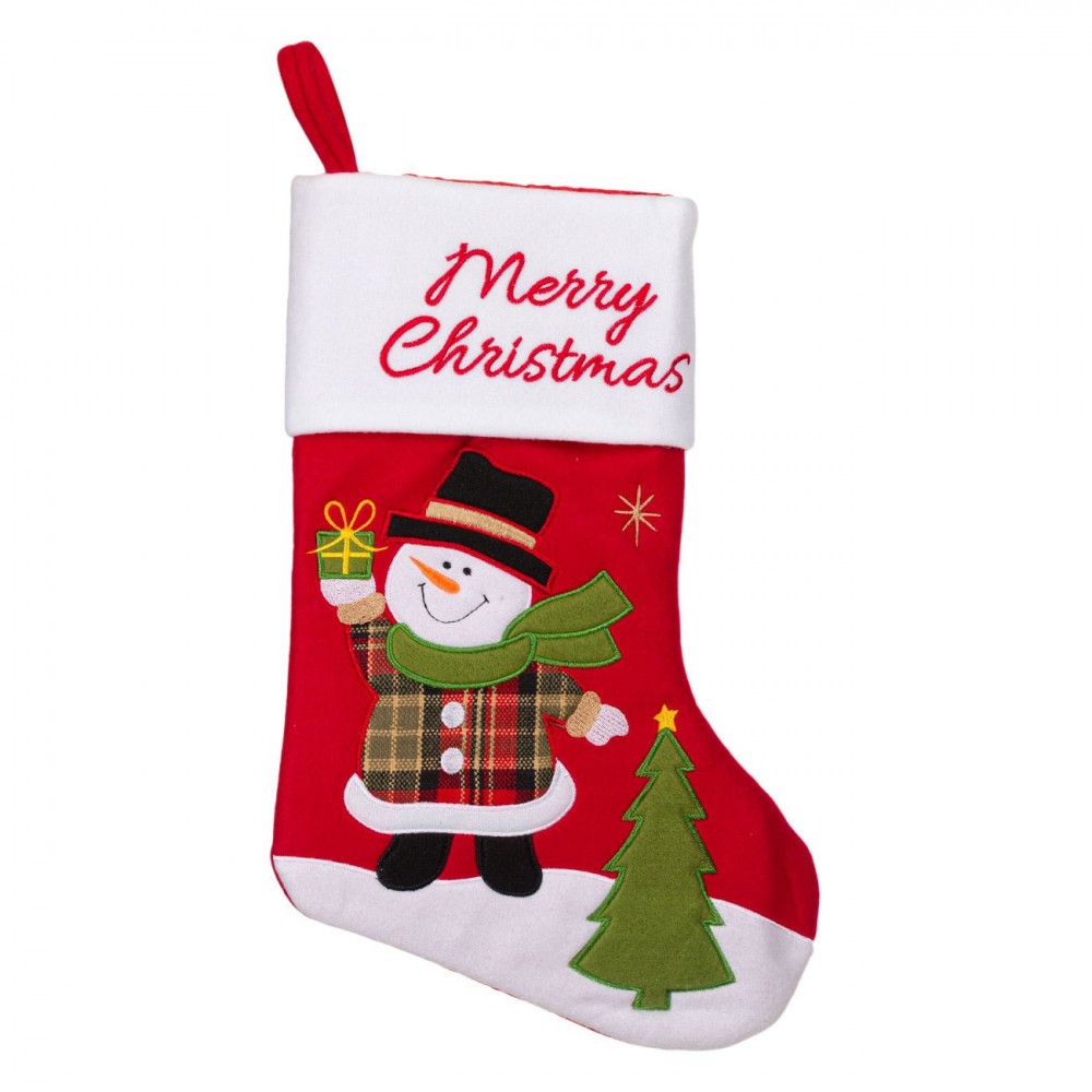 Cizmuliță Decorativă Crăciun, Model Om de Zăpadă, Culoare Roșie, Dimensiuni 25x38 cm, Material Poliester