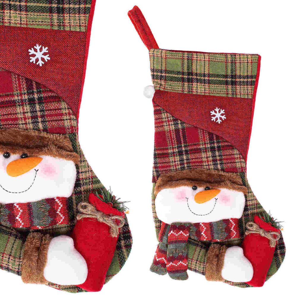 Cizmulita decorativa, Soseta pentru cadou tip figurina Om de Zapada in relief, 42 cm