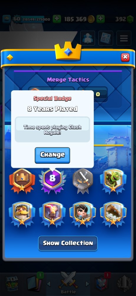 Vand cont clash royale 15k trofee ,badge de 8 ani ,125 emote-uri.