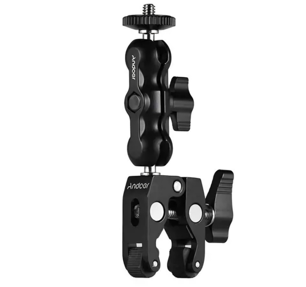 Clește Andoer cu brat dublu articulat, surub 1/4, prindere monitor, lumina video, microfon