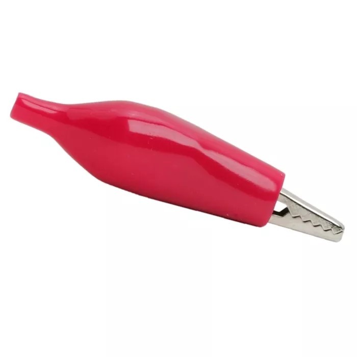 Clema crocodil mare 44 mm 5 Amperi. Izolatie PVC rosu.