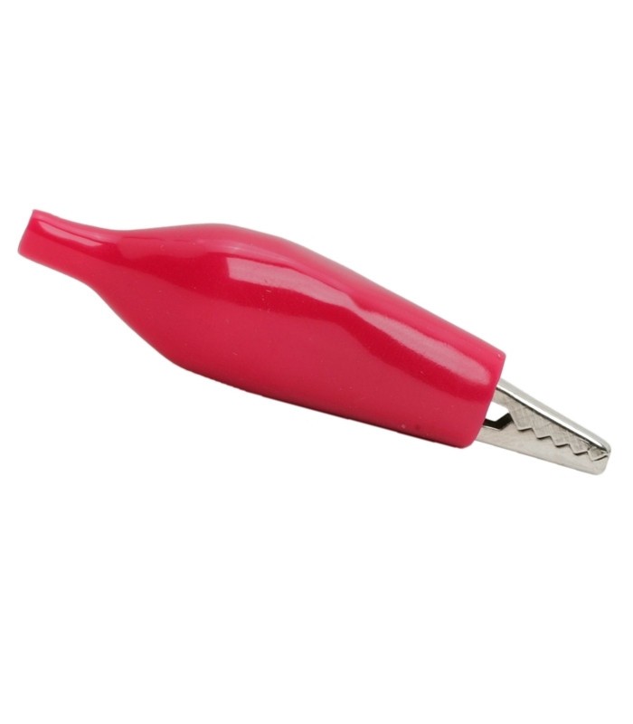 Clema crocodil mare 44 mm 5 Amperi. Izolatie PVC rosu.